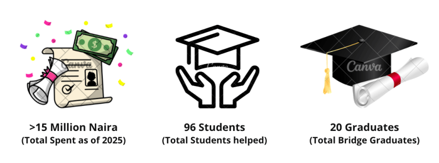 A report by UNESCO shows that the global gross enrolment (GER) for higher education rose from 19 % in 2000 to 40 % in 2020. However, Africa still lags with a GER below 20 %. Among the many barriers to higher education in Africa is the lack of financial resources for many households, which results in wasted talents and opportunities. The Bridge aims to address this challenge by offering scholarships and mentorship to bright but disadvantaged students who can become skilled and confident leaders for Africa and overcome the cycle of poverty.